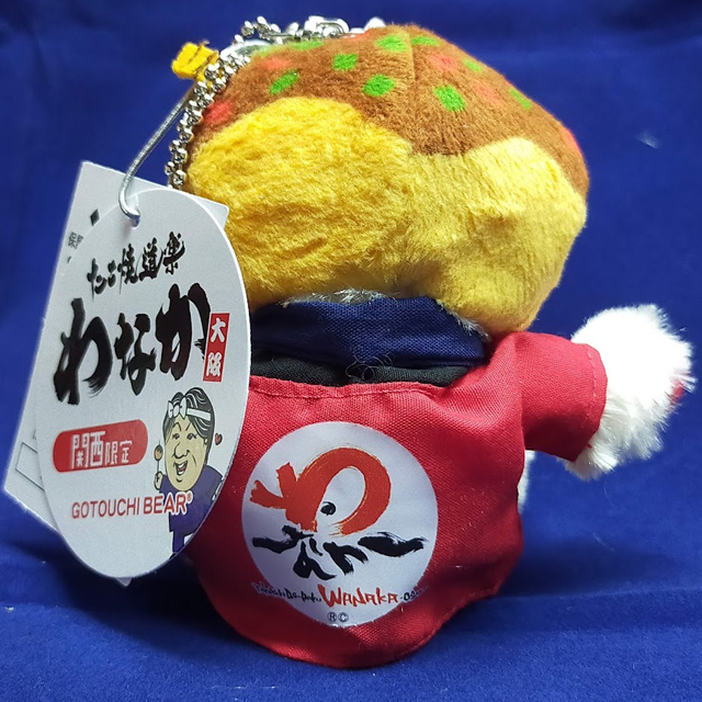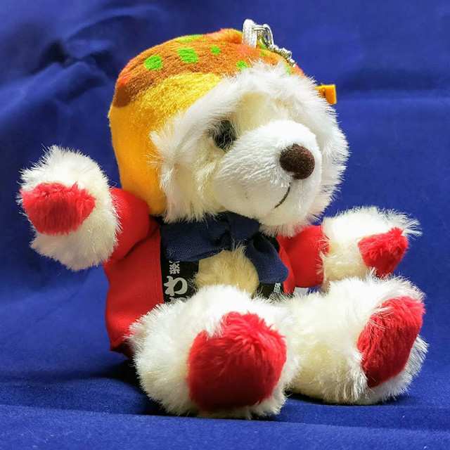 地域ごとの名物をモチーフにしたご当地でしか会えないくまのぬいぐるみ「ご当地ベア」。 集めるとその街に行った気分を味わえちゃうかも!? 有名な「たこ焼道楽わなか」さんとのコラボ商品です♪ 美味しそうな淡いミルクティー色のボディに、 たこ焼きの帽子をかぶり(爪楊枝付き!(◎_◎;) 職人が着る法被を颯爽と羽織り、 手のひらと足裏は真っ赤に焼けた(?)たこ焼き!大阪の商人気質が感じられますね! ボールチェーン付き かばんにつけられるマスコットサイズ:(幅:約110mm×高さ:約110mm)